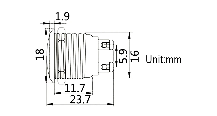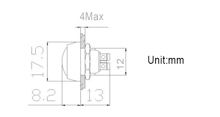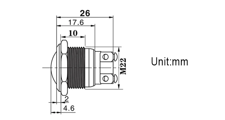 Изготовлен из нержавеющей стали, прочный и долговечный. Высококачественный внешний вид и приятные на ощупь ощущения. Принимает резиновое кольцо и шестиугольную гайку фиксированной, анти пыли и водонепроницаемый, что делает его отлично подходит для использования на открытом воздухе. Медное покрытие серебряные клеммы для хороших проводящих свойств. Мгновенный тип, нажмите на него, отпустите. Металлическая головка на кнопках прочная для длительного нажатия.