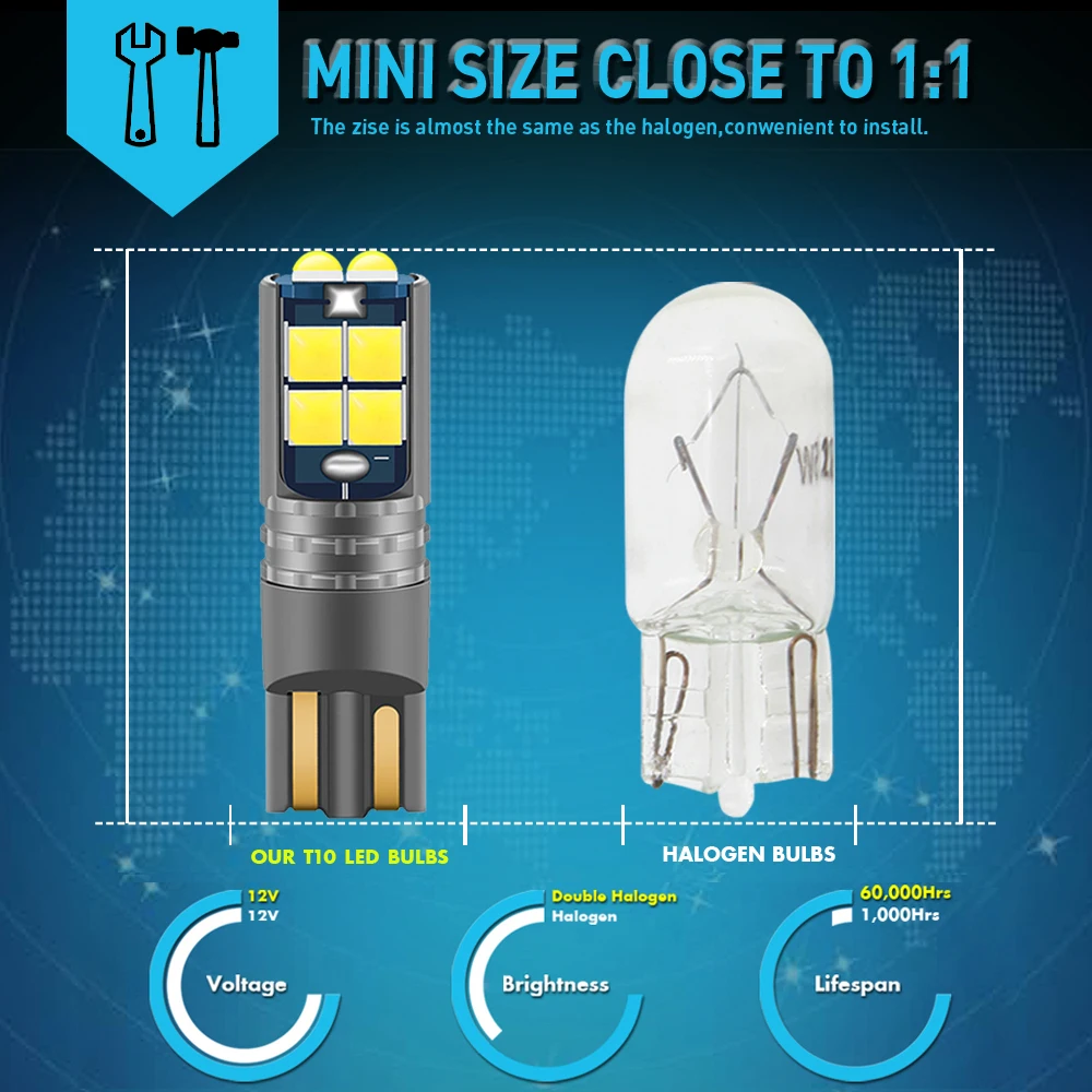 1 всего 10 штук 3030 SMD чипы 2 стандартных T10 , 99% близко к оригинальным галогенным лампам 3 Стабильный IC драйвер, Canbusl без ошибок, подходит для автомобилей 12 В