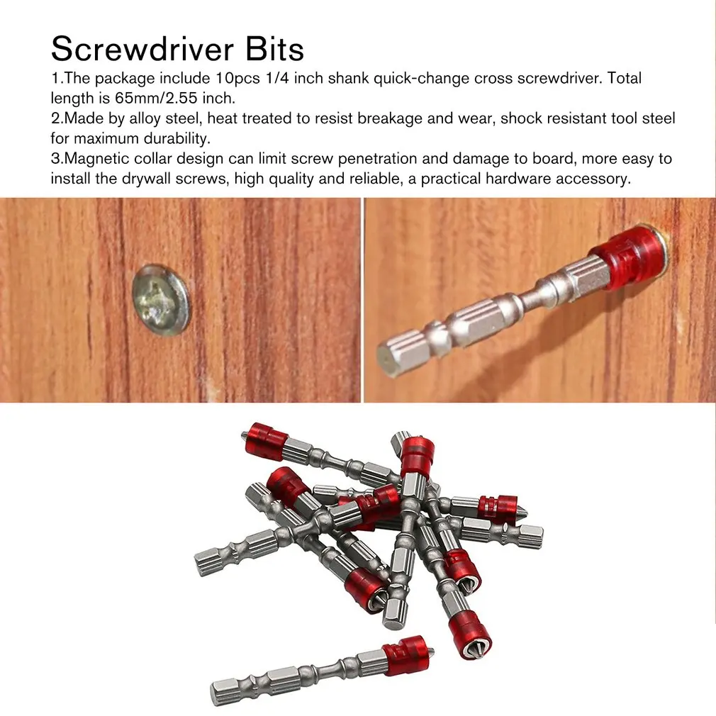 1. Посылка включает в себя 10 шт. 1/4 дюйма хвостовик быстросменная крестовая отвертка. Общая длина 65 мм/2,55 дюйма.