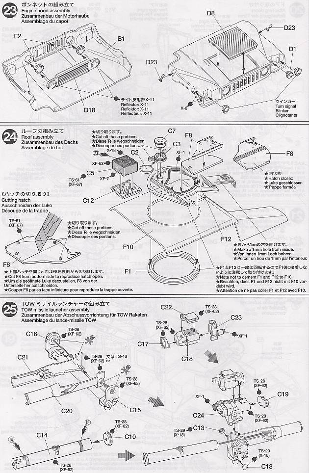 【 模型について 】M1046 ハンビーのプラスチックモデル組立キットです? ●全長 137 мм, 攻撃力を強化した迫力ある姿を高い実感でモデル化 。 ●towミサイルラン チャーは装填部までリアルに再現 。 ●ドアは強化タイプとし 、 車内には収納状態のミサイルや三脚架 、 コンテナ類もセット 。 ●フロントバンパーはウインチを装 備したタイプを用意 。 敵味方識別用パネルのcipも付属 。 ●海兵隊仕様のエアインテークとマフラーもセット 。 さらにブッシュガードの装着も可能 。 ●ドライ バーとオペレーターの人形 2 体 、 第 1 海兵師団や第 3 歩兵師団 、 kforなどマーキング 4 種類付き 。