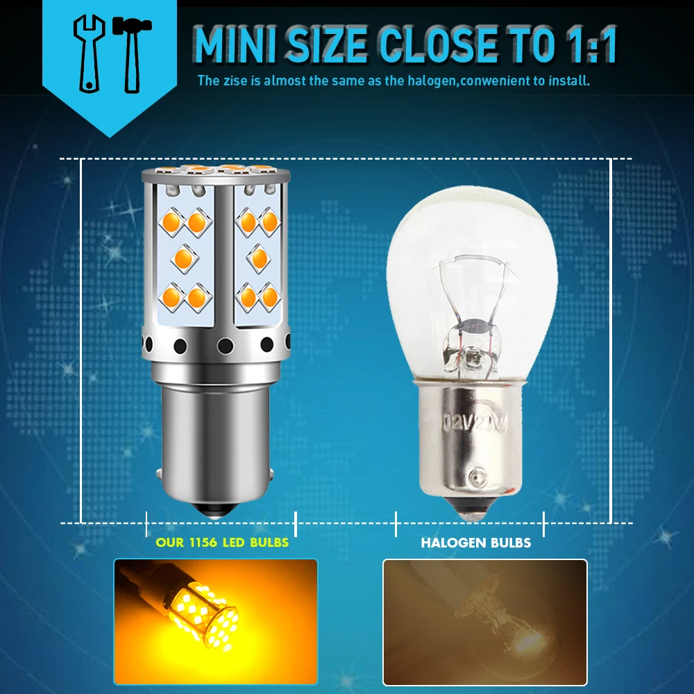* Изготовлен из высококачественного SMDs, может выдерживать тряску и вибрацию. * Угол обзора 360 градусов устраняет горячие точки. * Высокая мощность SMD светодиоды лампы намного ярче, чем оригинальные лампы накаливания, и небольшое энергопотребление. * Может заменить большинство автомобилей светильник светодиодный лампы с 1156/BAU15S базы.