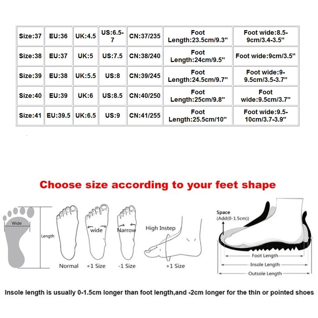 Полезные советы:Различные стили обуви, пожалуйста, выберите размер в соответствии с типом вашей стопы.
