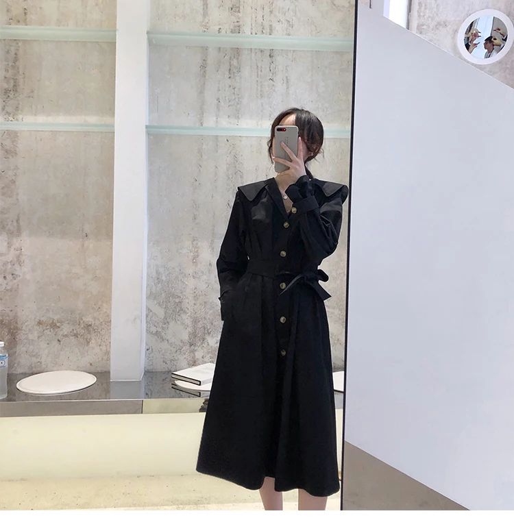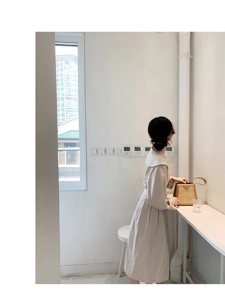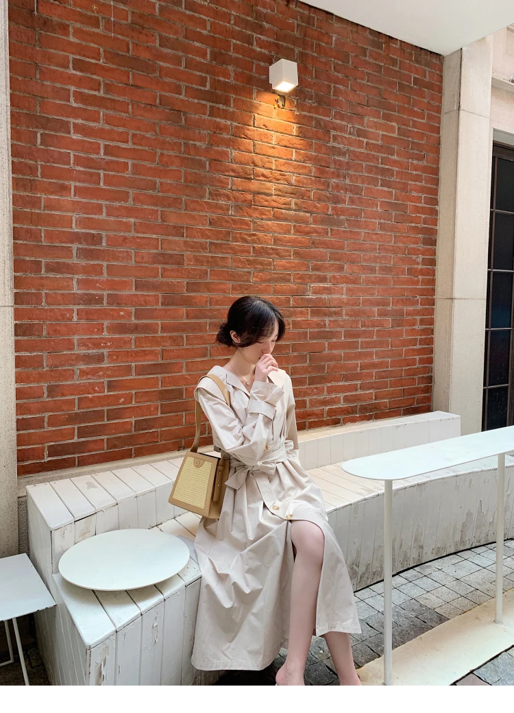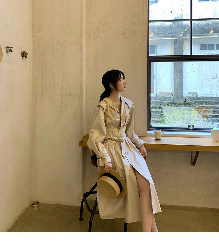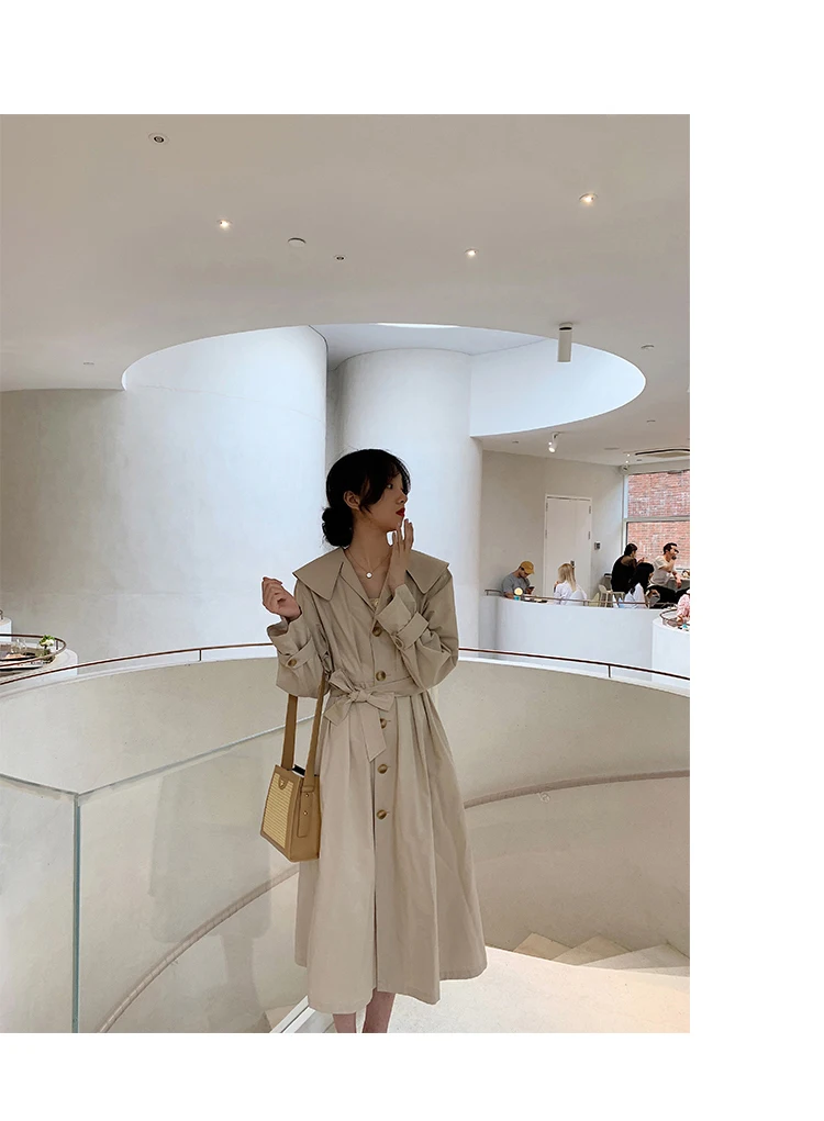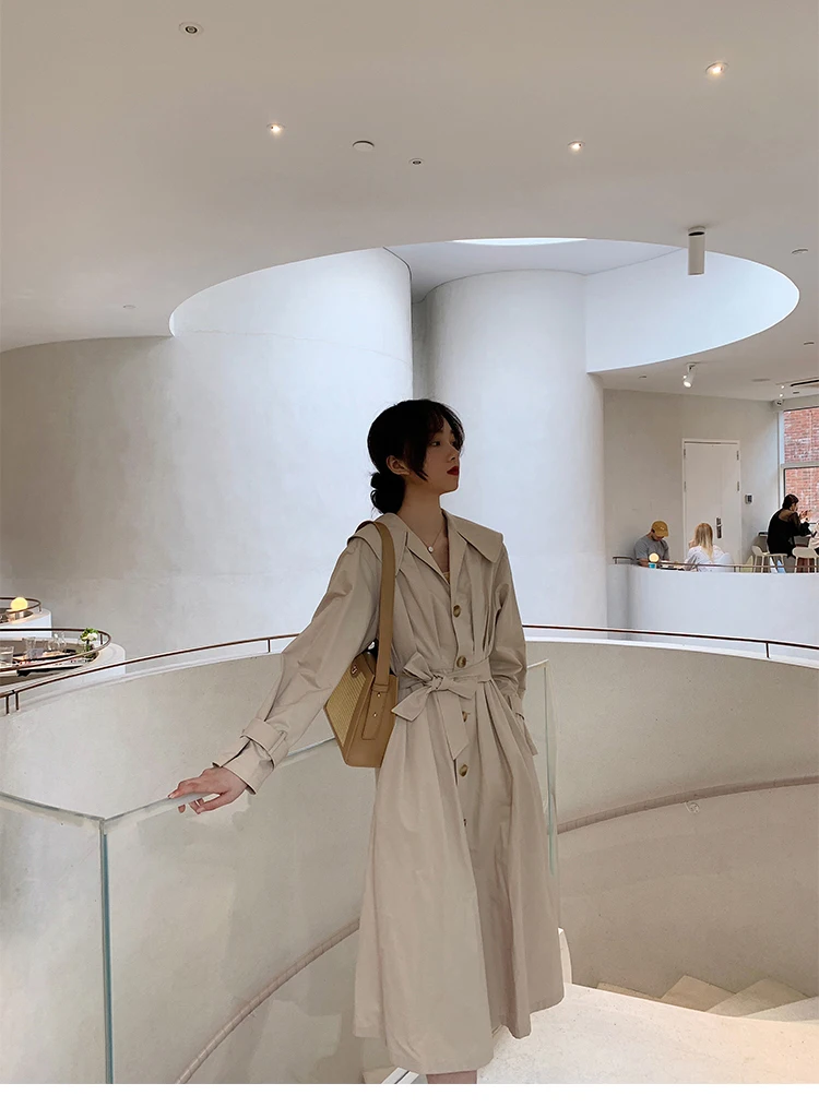 Новинка, весна-осень, женский простой плащ с лацканами, длинный рукав, пояс, свободная дизайнерская ветровка, уличная одежда, AE973