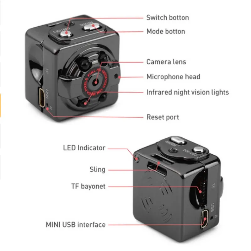 Особенности SQ13Сенсор: 2 мега CMOS сенсор GC1024Диафрагма: F 2,5Фокусное расстояние: f = 2,33 ммОптический FOV(D):155Оптический FOV(H):97Оптический FOV (В):72Память: TF-карта, до 32 Гб (не встроенная)Микрофон: ВстроенныйАккумулятор: 3,7 в 300 мАчUSB:MicroUSB2.0 5-контактныйРазмер: 29,9*28*28 ммВес нетто: 24,1 гИзображениеРазрешение изображения: 12 м (4032*3024)Формат файла: JPEGПропорция изображения: 16:9ВидеоРазрешение видео: 1920*1080PЧастота видеокадров: 30 кадров в секундуФормат видео (сжатия): AVI(M-JPEG)Продолжительное время записи видео: запись видео 90 минутПараметрыРабочая температура: -10 ~ 50 по ЦельсиюТемпература хранения: -10 ~ 70 по ЦельсиюВлажность окружающей среды: 5%-90% (без конденсата)Сертификация: CCC,CE,FCCПластмассовые аксессуары: естьОбнаружение движения: не поддерживаетсяТВ-выход: ПоддержкаСкорость передачи: Высокая скорость USB2.0Тип интерфейса: Micro USBПоддерживаемая система: Windows ME/2000/XP/2003/VISTA. MAC OS.LINUXПосылка:1 * хост SQ13 (поставляется с оригинальной коробкой)1 * Универсальный кронштейн1 * водонепроницаемый корпус1 * Водонепроницаемая Базовая Опора корпуса1 * линия передачи данных1 * инструкцииКамера FX01SQ13