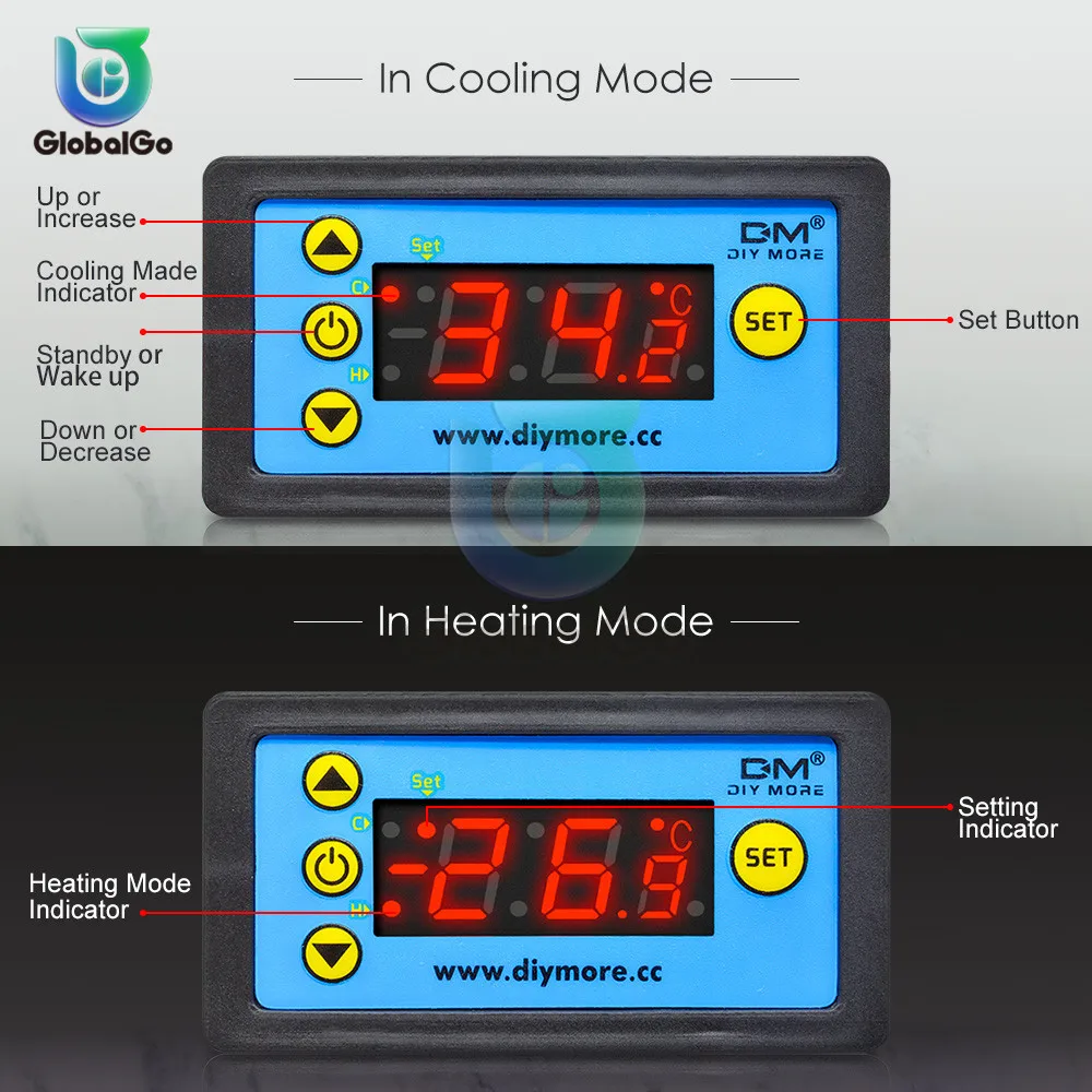 Описание: Модель: W3231 светодиодный цифровой регулятор температурыДиапазон контроля температуры: -50 °C ~ 99 °CТочность контроля температуры: 0,1 °C/0,1 °FЦвет дисплея: красныйРабочий Источник питания: DC12VПостоянный ток 24 В110 В ~ 220 ВДатчик температуры: 1 м NTC 10KРазмер изделия: 79,2 мм × 41,9 мм × 26,3 ммРазмер отверстия: 72,1 мм × 39,2 мм Панель управления и отображения