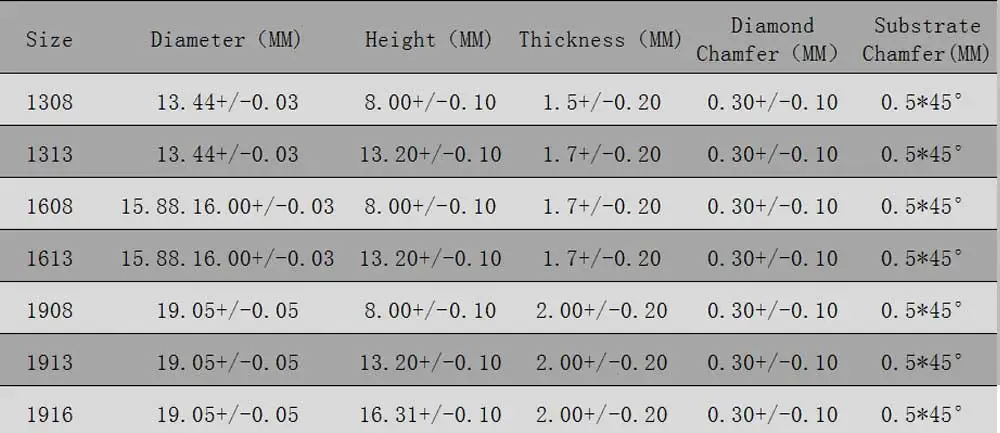 Поликристаллический Алмазный компактный резак PDC в основном изготовлен из алмазного порошка и кобальтового металлического порошка. Мы специально разработанный сетчатый интерфейс может обеспечить более сильную прочность склеивания между алмазом и подложкой, а также уменьшить остаточное напряжение в интерфейсе и в алмазном столе. Это делает наш PDC с лучшей ударопрочностью и срок службы дольше, чем у других.