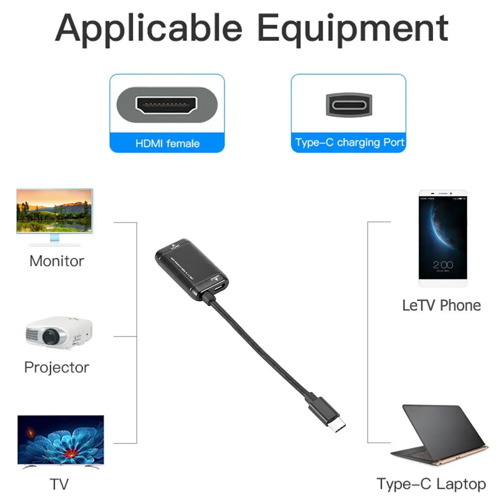 1. Это портативный кабель преобразования, который преобразует выход цифрового сигнала высокой четкости HDMI через новый интерфейс цифрового сигнала USB 3,1 типа C (MHL).