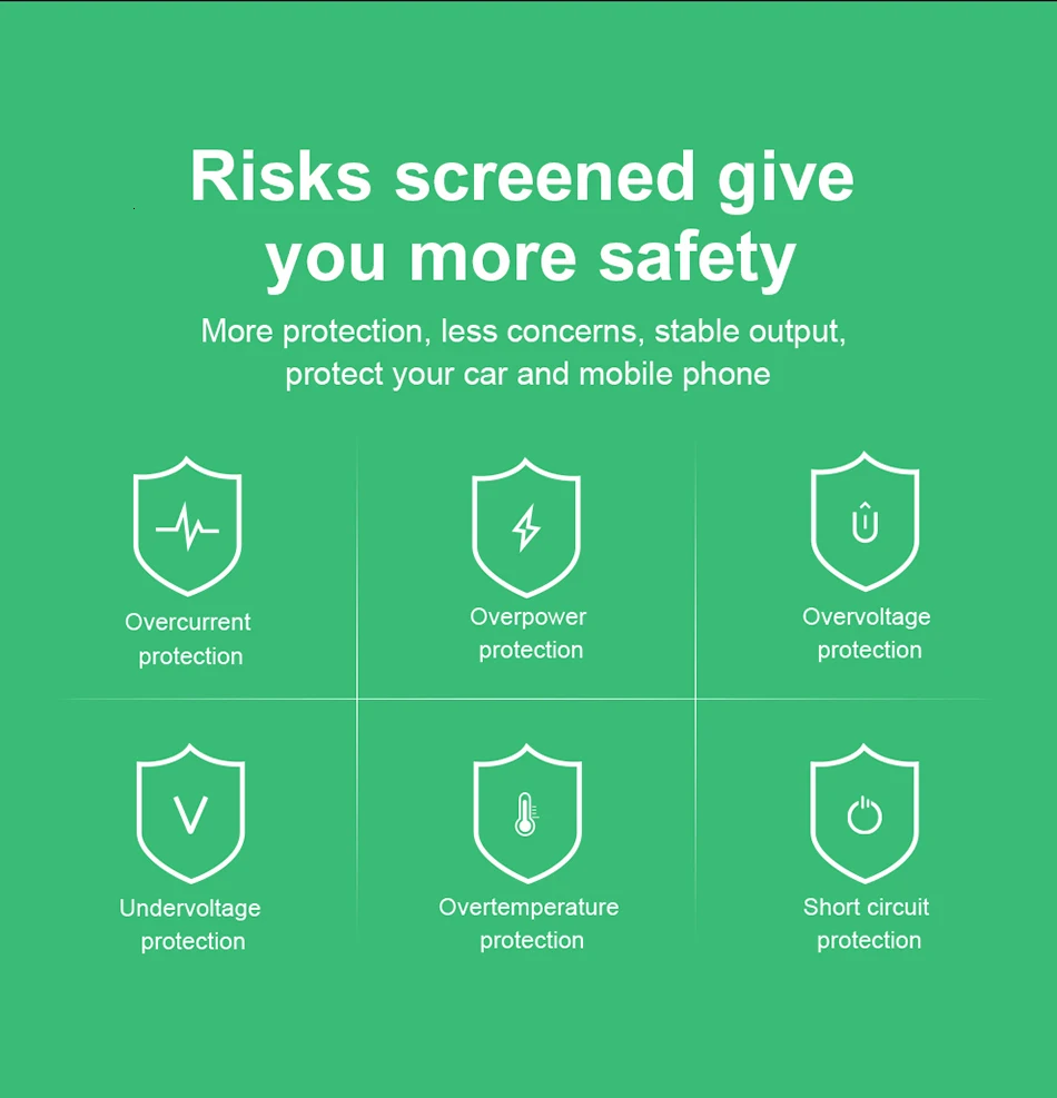 Примечание: при одновременной зарядке 2 порта Выход автомобильного зарядного устройства будет составлять 5 В, что не поддерживает быструю зарядку.