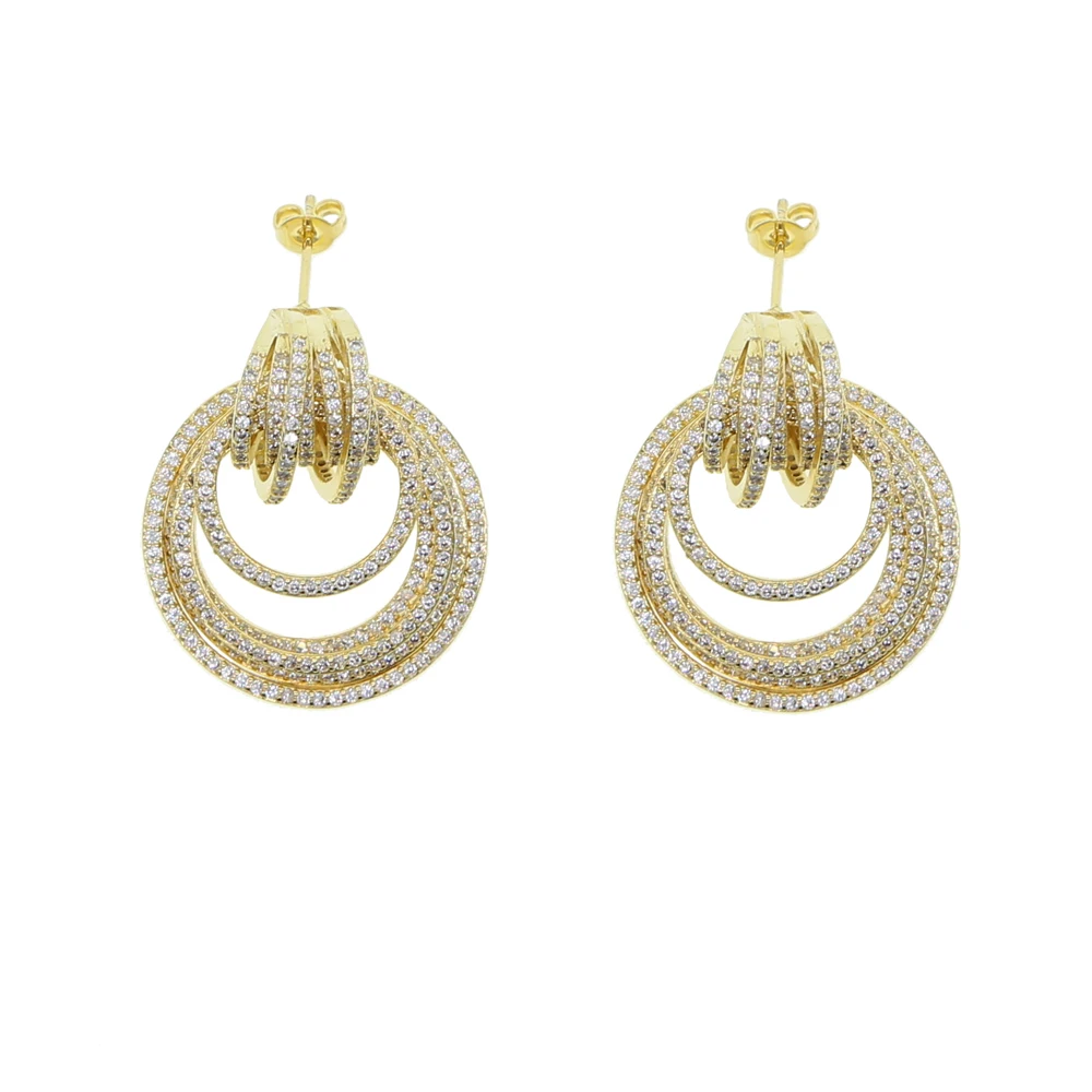 Новый дизайн, много круглых компонентов, большие серьги-гвоздики для женщин, женская Свадебная вечеринка, полностью проложить микро CZ циркониевые ювелирные изделия для ушей