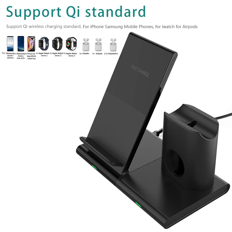 3 в 1 Qi Беспроводное зарядное устройство зарядная док-станция для Apple Watch 2/4/5 AirPods Pro Беспроводное зарядное устройство подставка для iPhone 8 plus Samsung S8
