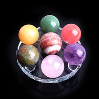 3 см натуральный хрустальный шар 7 Чакра рейки Luky хрустальные бусины 7 видов кварца с 7 звездными пластинами подставка стеклянная деревянная основа домашний декор