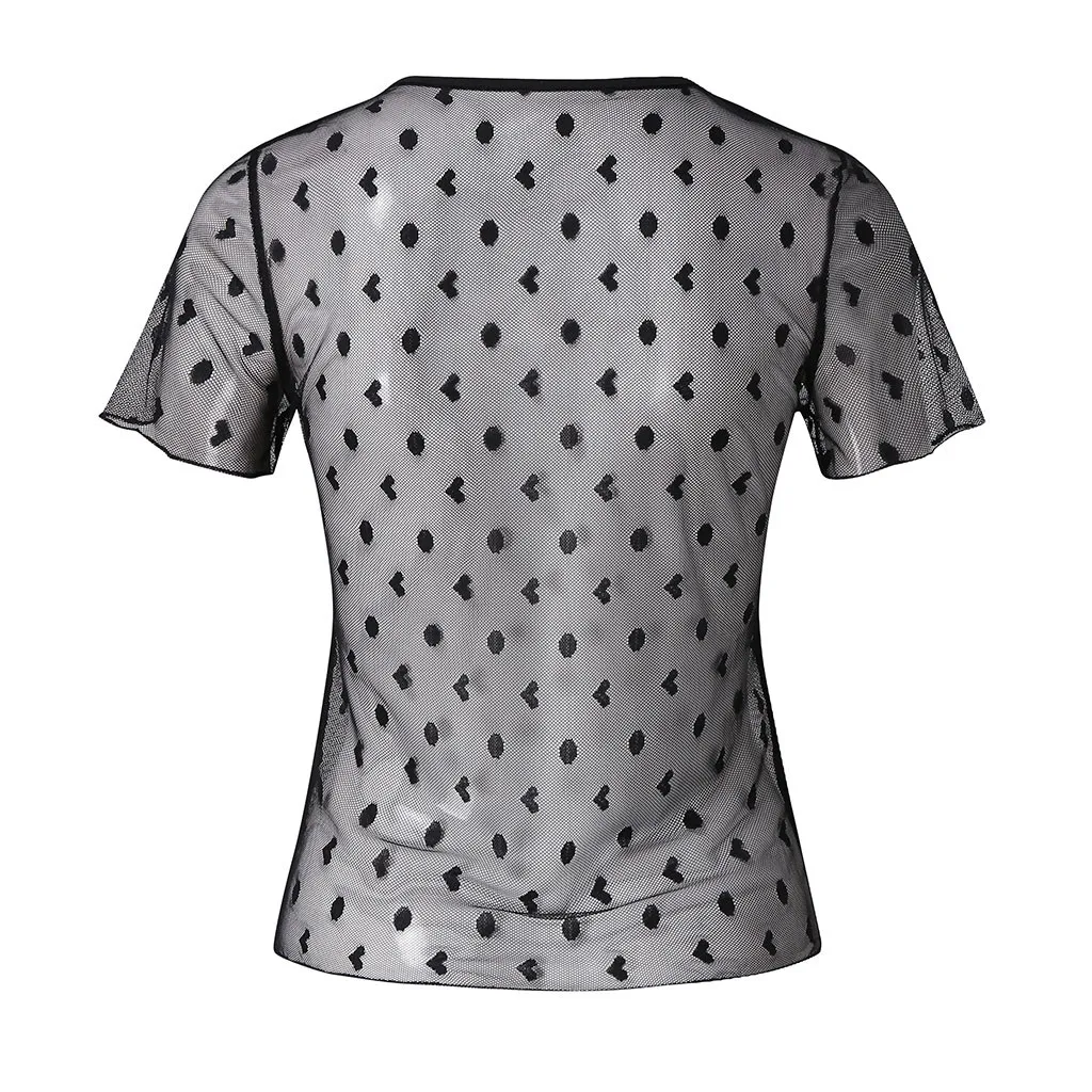 Сетчатый прозрачный топ женские футболки с коротким рукавом 2020 Новая летняя сексуальная тонкая женская прозрачная футболка с круглым вырезом