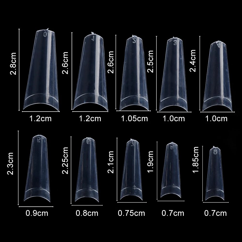 100% новый товар высокого качества. Материал изделия: АБС-пластик Цвет изделия: прозрачный/белый Размер: как на картинке Подходит для использования с гелем, акрилом или стекловолокном. Создайте свои ногти для свадьбы, вечерние или выходные свидания. Подходит для профессиональной, школы ногтевого искусства/колледжа, художника ногтевого искусства и личного/домашнего использования и т. д. Посылка включает в себя: 100/500 шт./пакет накладные ногти