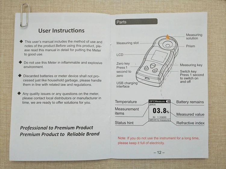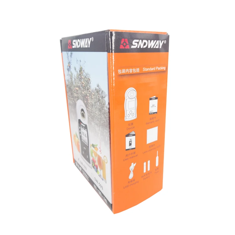 1 * SW-593 Brix meter,1 * USB кабель для зарядки, 1 * Руководство пользователя, 1 * салфетка для очистки линз