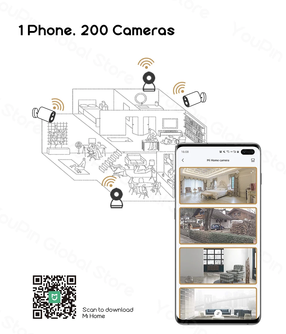 ------ С помощью приложения Mi Home вы можете одновременно просматривать видео в реальном времени с 200 различных камер. ------