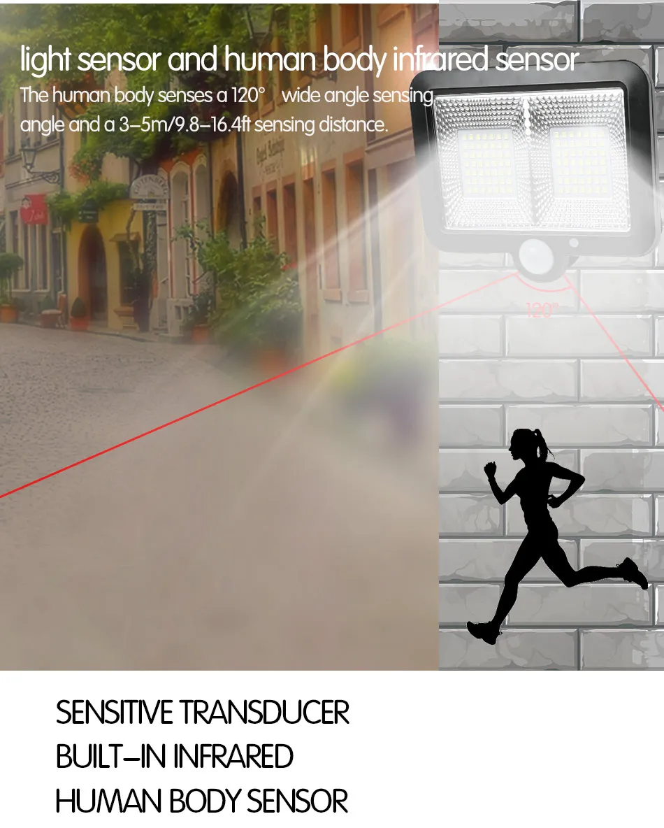3. В дневное время светильник не включен, только в ночное время Включите переключатель, когда датчик обнаруживает, что тело человека может получить светильник высокой яркости.