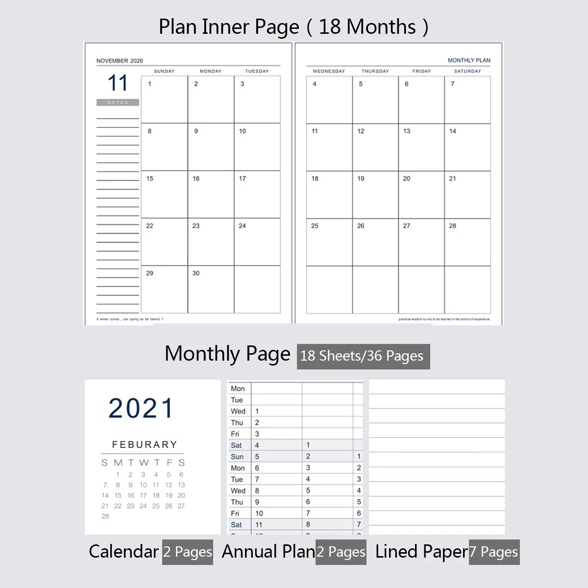 Деликатный ежемесячный планировщик, 24 листа утолщенной бумаги, используется для 18 месяцев.