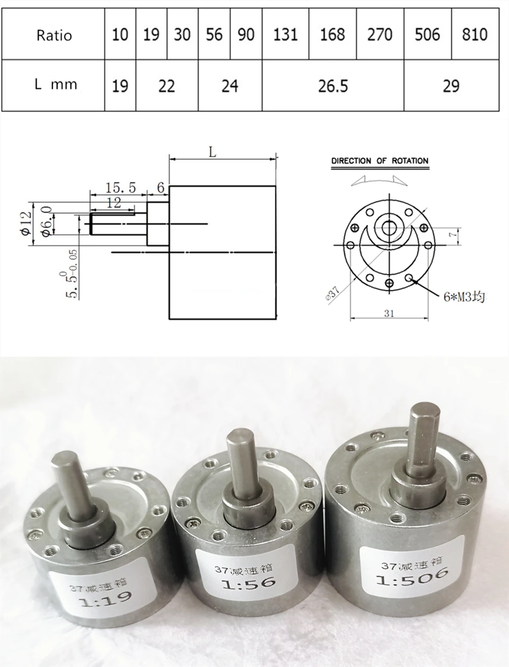 Описание: 1. Цельнометаллическая шестерня, первоклассная спиральная шестерня с шумоподавлением, подходит для 520 528 3530 3540 545 540 550 555 3429 и других двигателей. 2. Толщина L коробки передач отличается для различных коэффициентов уменьшения. 3. Нет технической поддержки. 4. Каждая коробка передач оснащена зубьями двигателя и винтами. Требования к установке: 1. Длина вала двигателя 9 мм (включая высоту подшипника).