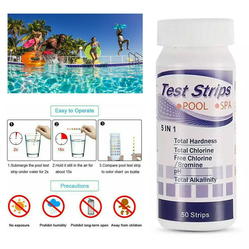 1. 5 в 1 тест-полоски качества воды в бассейне и спа. Тест на Бесплатный хлор, свободный бром, pH, полную Щелочность, общую твердость и общий хлор.