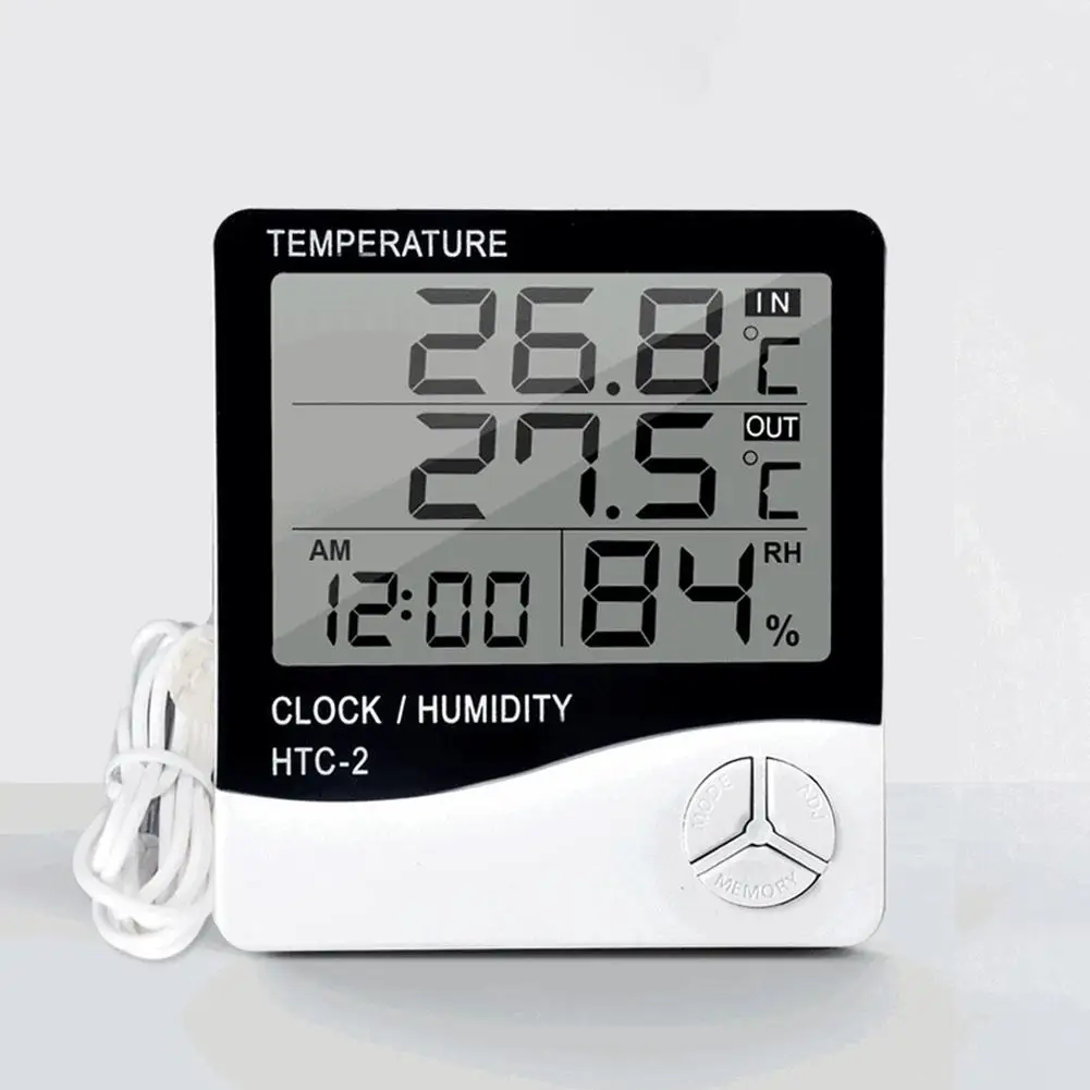 HTC-2 Цифровой термометр гигрометр электронный измеритель температуры и влажности домашние часы