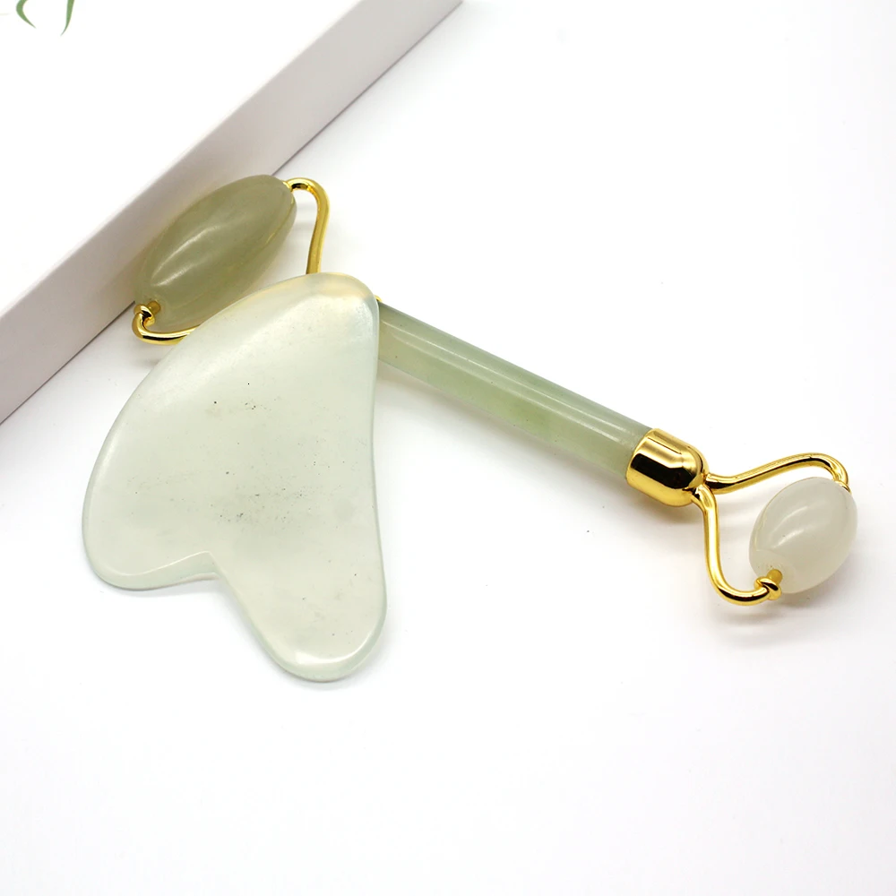 100% натуральный китайский подлинный нефритовый ролик гуаша инструменты массажер для лица набор для массажа лица глаз шеи массажер против морщин не пищет