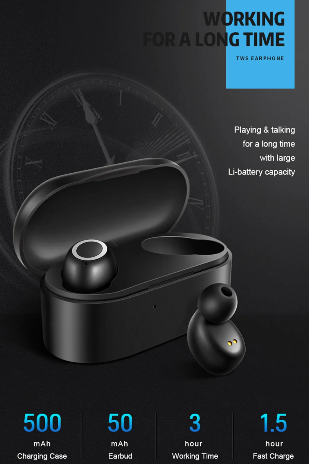 Bluetooth-гарнитура позволяет наслаждаться великолепными звуками на ходу. Удобно и плотно прилегает, убедитесь, что гарнитура остается плотно, когда вы находитесь вне бега, пробежки или Упражнения и другие виды деятельности. Эргономичные наушники в ушах Специально подходят для контуров ваших ушей и рабочего расстояния 8 метров, наши спортивные наушники позволят вам наслаждаться музыкой во время бега, Тренажерный зал, спорт и упражнения и другие виды деятельности. Технология Bluetooth 5,0, простое и быстрое сопряжение со смартфонами, планшетами и другими музыкальными устройствами с поддержкой Bluetooth и обеспечение высокого качества стереозвука для Совместимые устройства. Встроенный литий-полимерный аккумулятор емкостью 40 мА · ч, наслаждайтесь до 2 часов высокого качества разговора/воспроизведения (полная зарядка около 1-2 часов), до 30 часов в режиме ожидания. Зарядный чехол емкостью 400 мА · ч может заряжать в 3-4 раза дольше через USB. Есть интеллектуальная английская Голосовая подсказка при включении/выключении питания, сопряжении, отключении Bluetooth, низком электричестве. Совместим с 99% мобильный телефон, планшет, ноутбук с поддержкой Bluetooth и другие цифровые устройства на рынке. Тип: Беспроводные bluetooth-наушники Twins Два наушника можно использовать одновременно или отдельно в зависимости от ваших потребностей. Без провода наушники можно легко переносить и хранить.Параметр