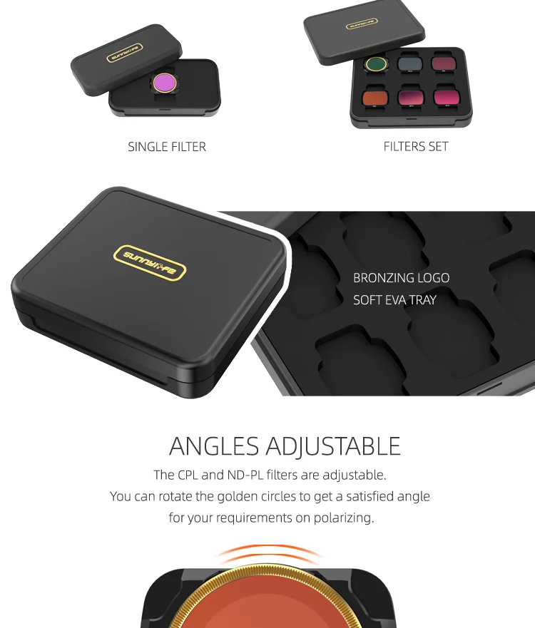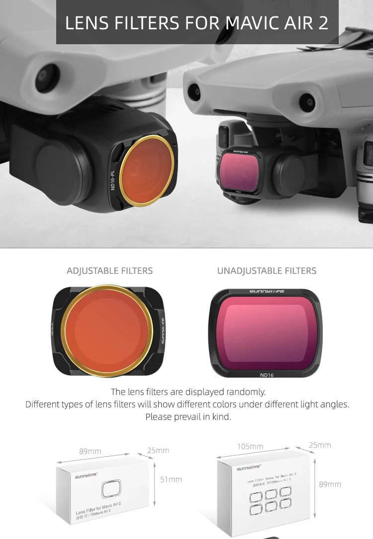 -Подходит для DJI Mavic Air 2 Drone Gimbal объектив камеры, -Фильтр изготовлен из высококачественного импортного оптического стекла, -Зеркальная поверхность обработана многослойным покрытием, -Высокая прозрачность и высокая яркость восстанавливают истинные цвета, -CPL и ND-PL являются регулируемыми фильтрами, вы можете вращать золотую рамку в любой момент, Светильник ый вес не обременяет карданную камеру.