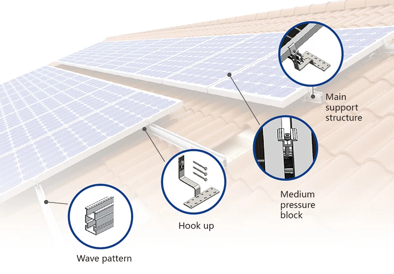 Солнечная панель крепление введение Изготовлен из высококачественного алюминия и нержавеющей стали, с хорошей прочностью и высокой коррозионной стойкостью. Этот продукт может быть применен в очень суровых условиях установки. Для различных плиточных архитектур, Singfo Solar PV Монтажная система оснащена различными barbs, что делает его широко применимым для установки различных типов крыш, таких как керамическая плитка, Асфальтовая плитка, черепица и другие типы черепичных крыш. Особенности Подходит для установки солнечных панелей любых спецификаций Детали изготовлены из высококачественного алюминия и нержавеющей стали, что обеспечивает высокую прочность материала и длительный срок службы. Не повреждает собственную водонепроницаемую систему крыши, не требует технического обслуживания и обладает сильной защитой от ветра С функцией гибкой регулировки установка Простая и быстрая, экономя затраты на рабочую силу и время установки, эффективно уменьшая сложность строительства. Индивидуальная длина может устранить необходимость сварки и резки на месте, тем самым обеспечивая высокую коррозионную стойкость, прочность конструкции и эстетику от завода до места установки Широкий спектр использования, от небольших солнечных систем до крупномасштабных солнечных систем находятся в диапазоне обслуживания, система может быть оптимизирована в соответствии с реальной системой крыши.