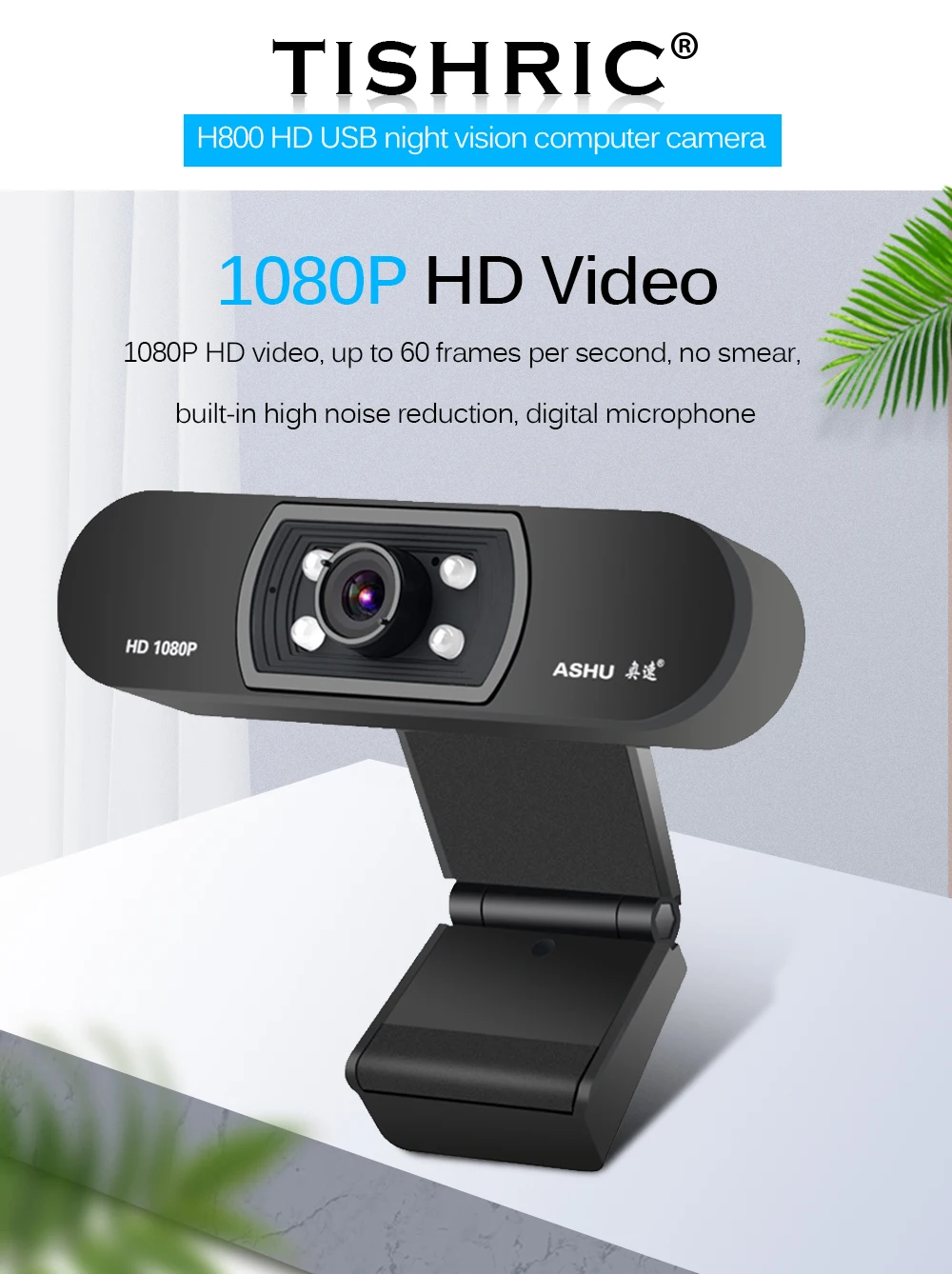 Веб-камера TISHRIC 1080p ASHU H800 USB 2,0 веб-камера с микрофоном с заполняющим светильник для компьютера ПК ноутбука видеовызова Win10/OS