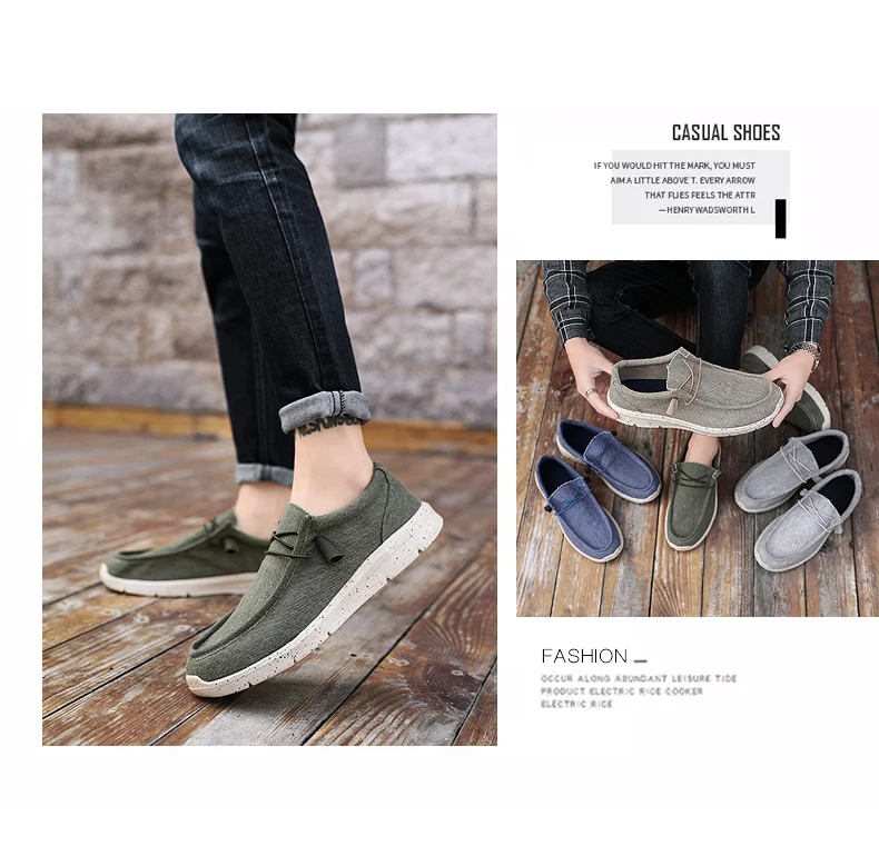 Men's Casual Shoes Denim Canvas Breathable Men Autumn Vulcanized Shoes Slip Wear Men's Flat Shoes Soft Summer Casual Shoes
