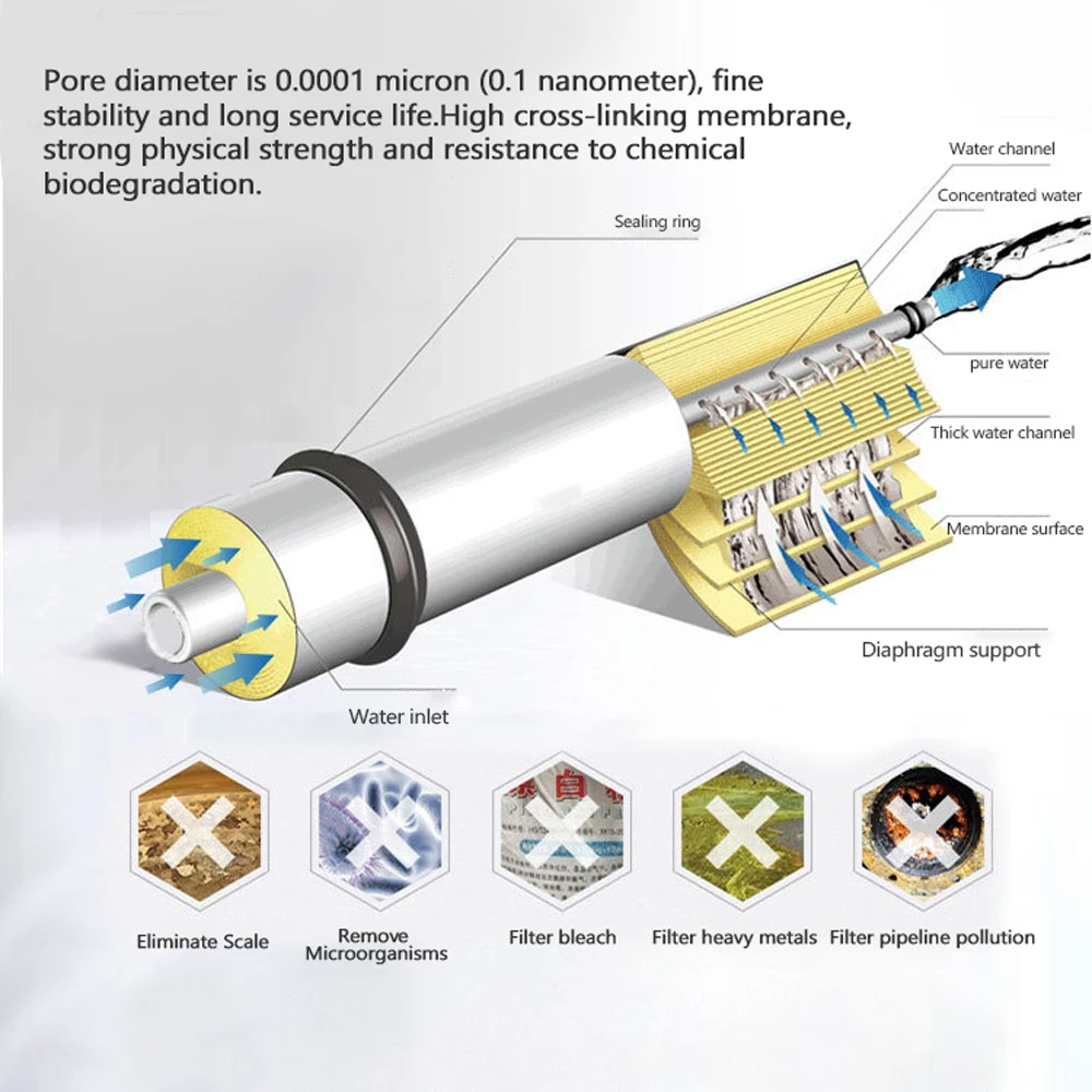 Тонкие мембранные поры обратного осмоса могут фильтровать все мелкие загрязнения в воде.