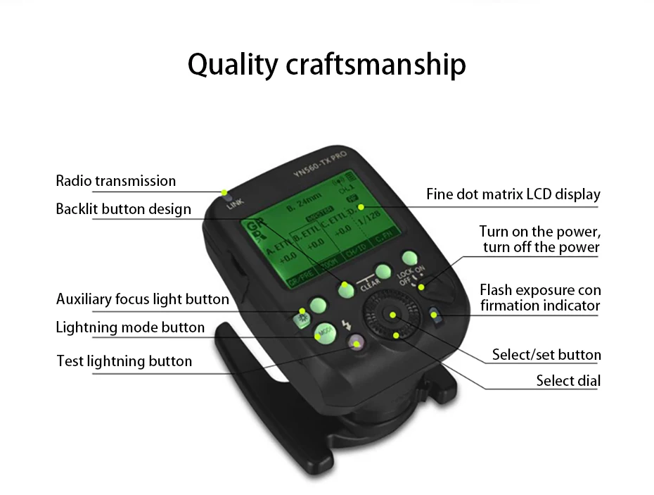 Принимает беспроводную технологию 2,4G, поддерживает беспроводной триггер для YONGNUO YN862C/YN968C/YN200/YN560III/YN560IV/YN860Li/YN720/YN660/YN685 speedlite; поддержка беспроводного приемника затвора серии YN622CII/RF605/серии RF603II/RF602-RX.