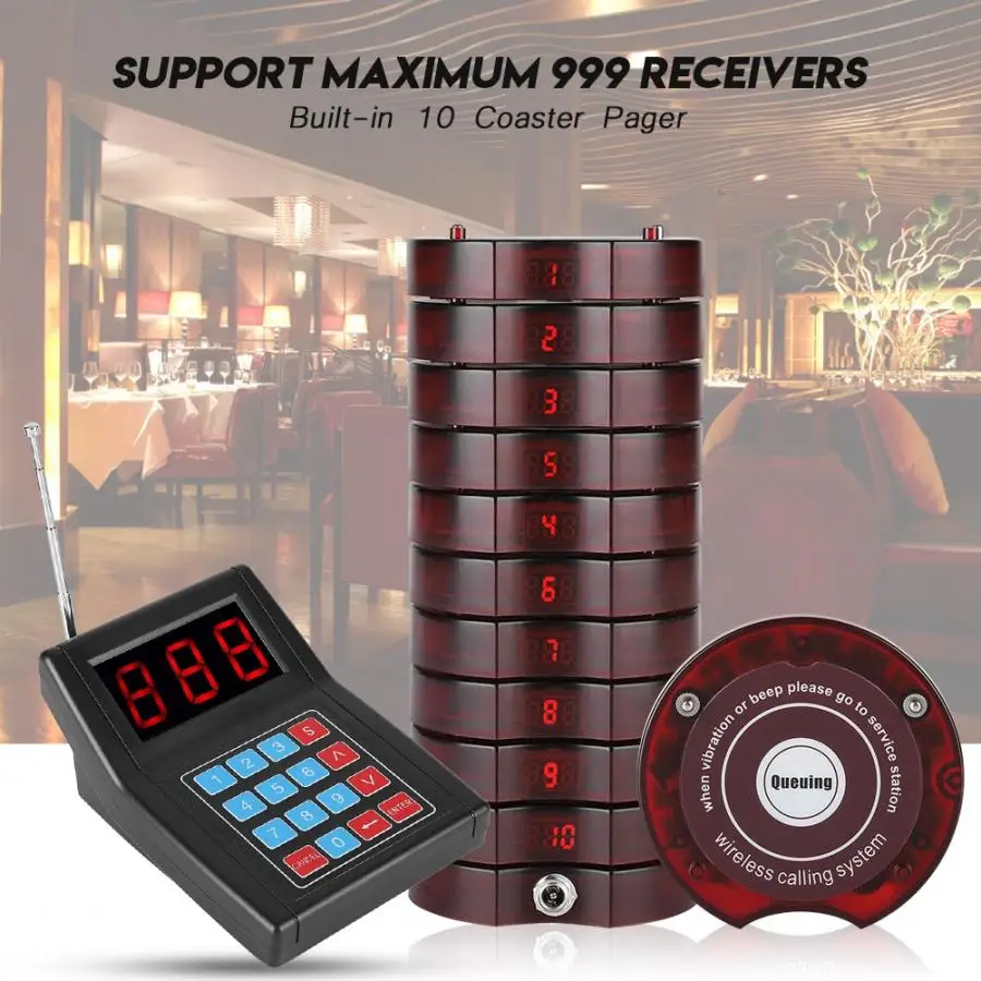 Эта беспроводная система вызова очереди использует клавиатуру 999 каналов и 10 частей пейджеров для повышения эффективности работы в значительной степени и избежания ожидания клиента в длинной очереди. Встроенная антенна распространяется на рабочее расстояние около 1,5 км. Кроме того, 3 режима индикации вибрации, bee cue и светильник подходят для различных ситуаций.