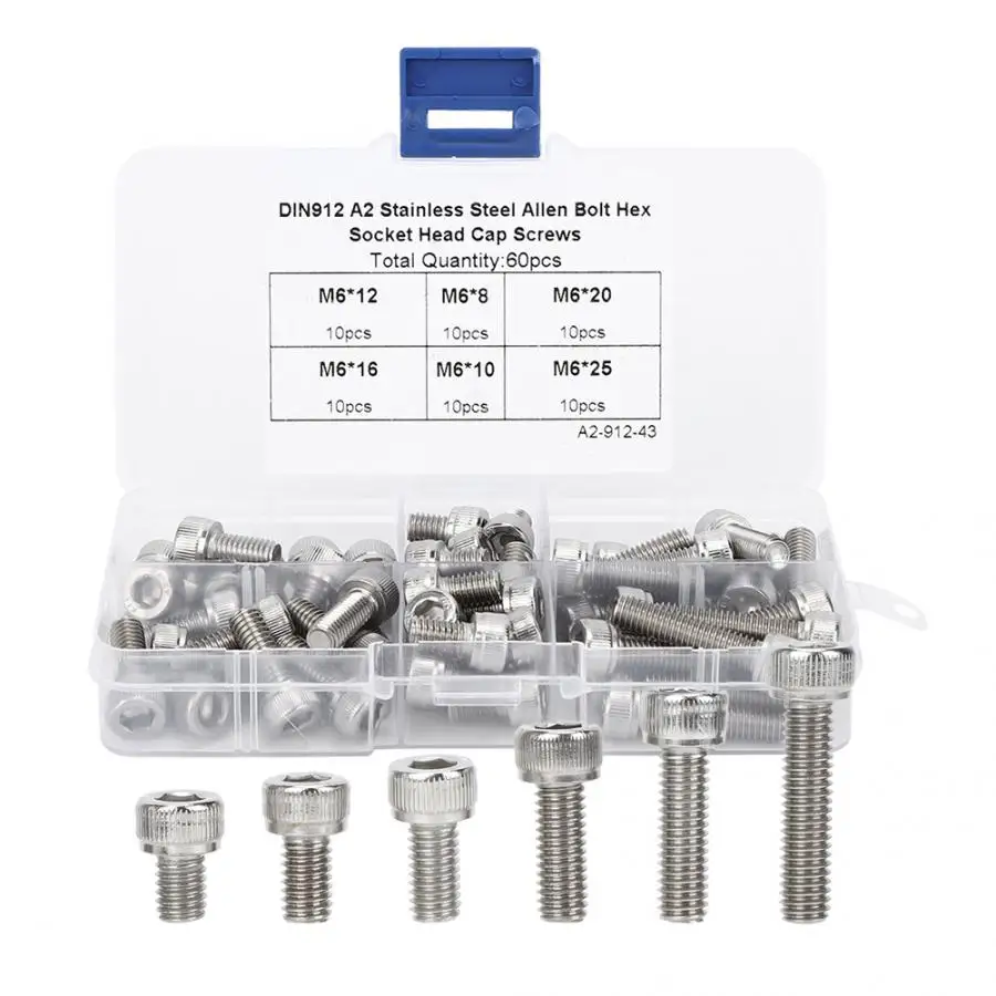 Набор шестигранных винтов с шестигранной головкой из нержавеющей стали M6, крепежные детали для электроники