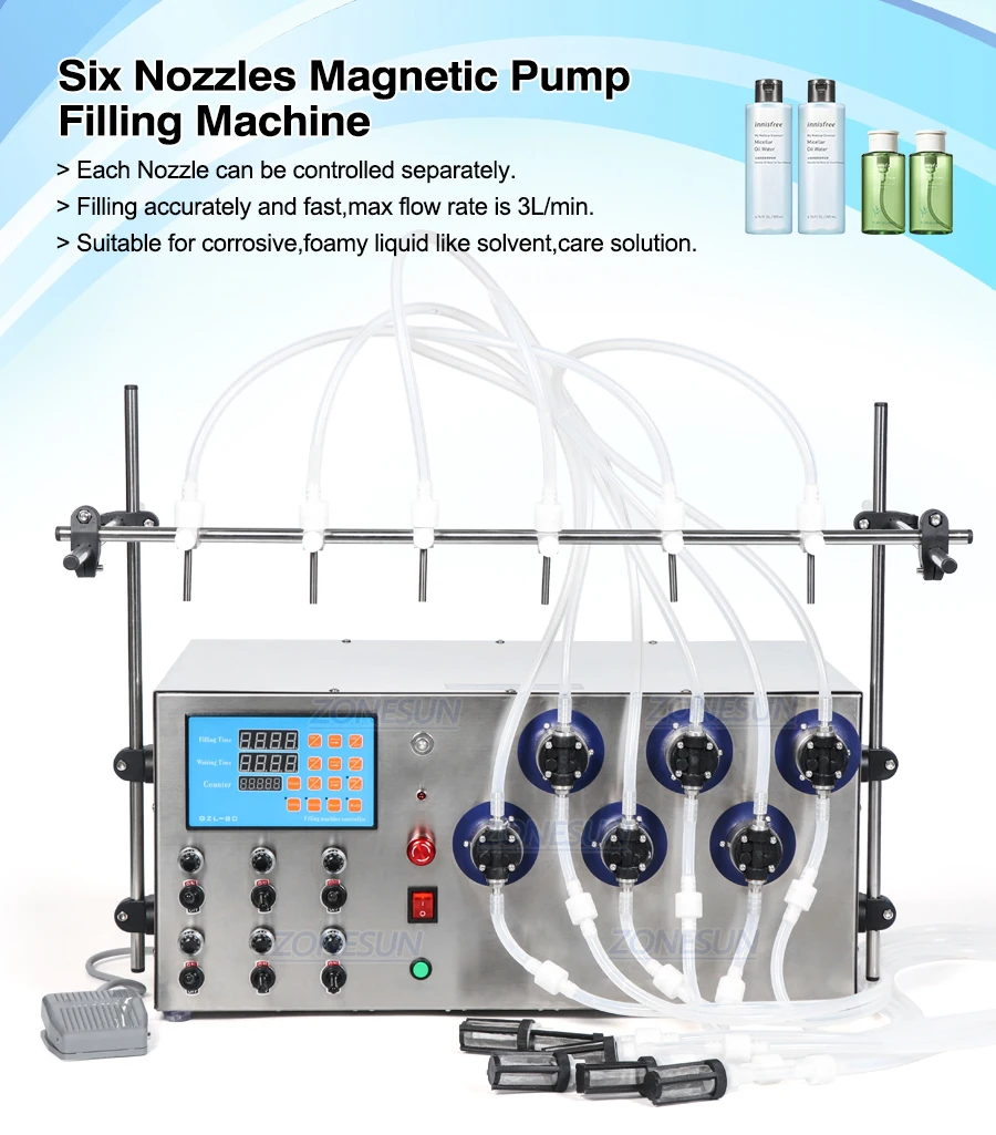 Эта машина для наполнения магнитного насоса подходит для коррозионной жидкости и жидкости с низкой вязкостью без таких частиц, как промывка глаз, тонер, молоко, вода, растворитель и т. д. она точно заполняет жидкость, и каждое сопло можно контролировать отдельно.