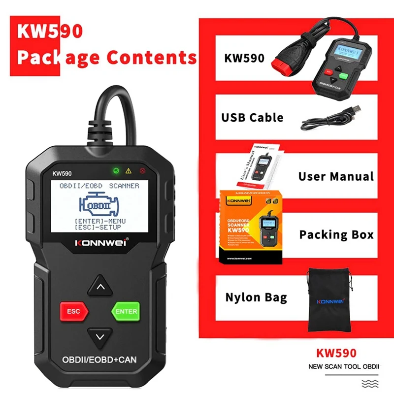 1 x считыватель кодов автомобиля iNNEXT KW590 OBD2