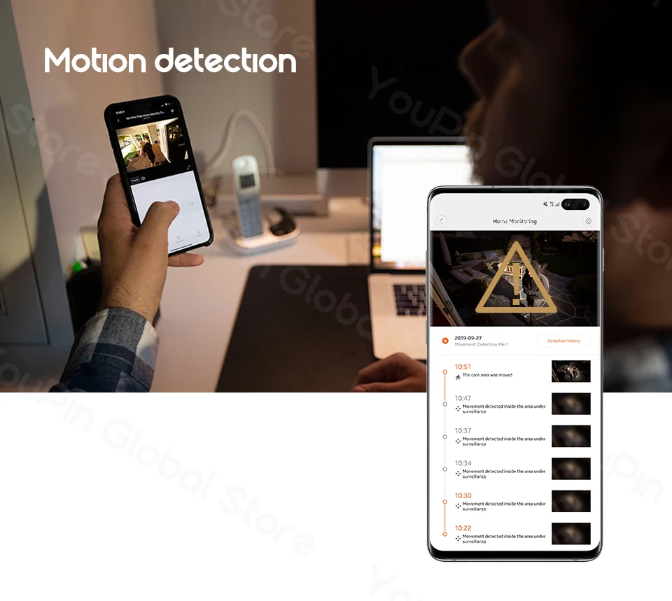 ------ В тех случаях, когда движения обнаруживаются в области под наблюдение, камера будет толкать вам 10-секундный видео-уведомление. ------