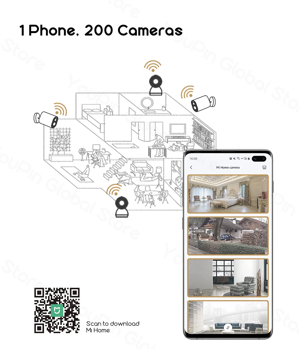 ------ С помощью приложения Mi Home, вы можете подключить до 200 IoT устройств, включая IP камеры. Вы можете просматривать видео с разных камер в одно и то же время. ------