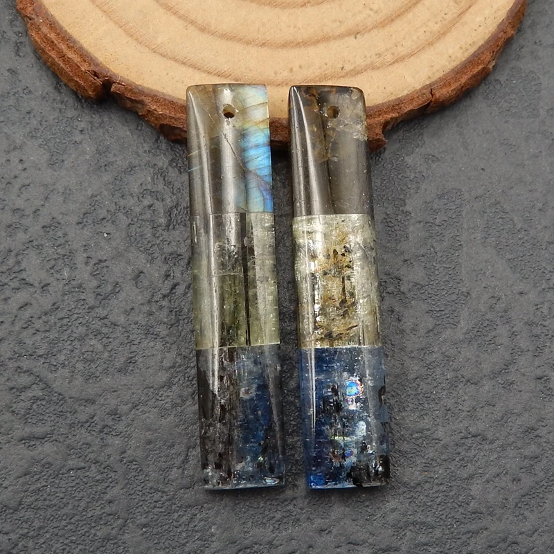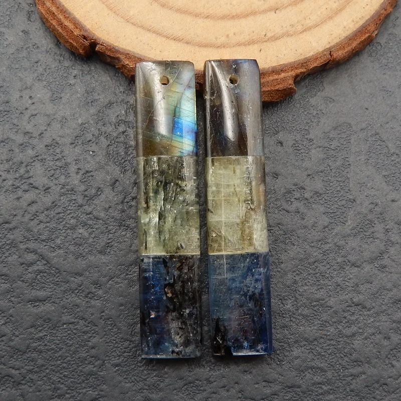Натуральный Синий Кианит, зеленый Кианит и Лабрадорит приклеенные прямоугольные серьги Pair41x9x4mm9g