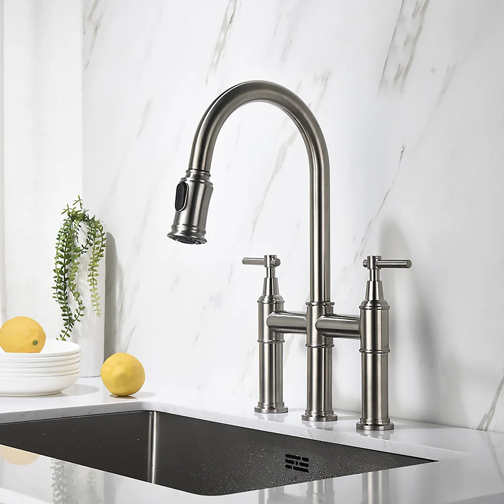 Описание продукта:Идеальный баланс между классическим и современным стилем, изящные изгибы и декоративные детали смесителя создают переходный вид, который дополняет любую кухню.