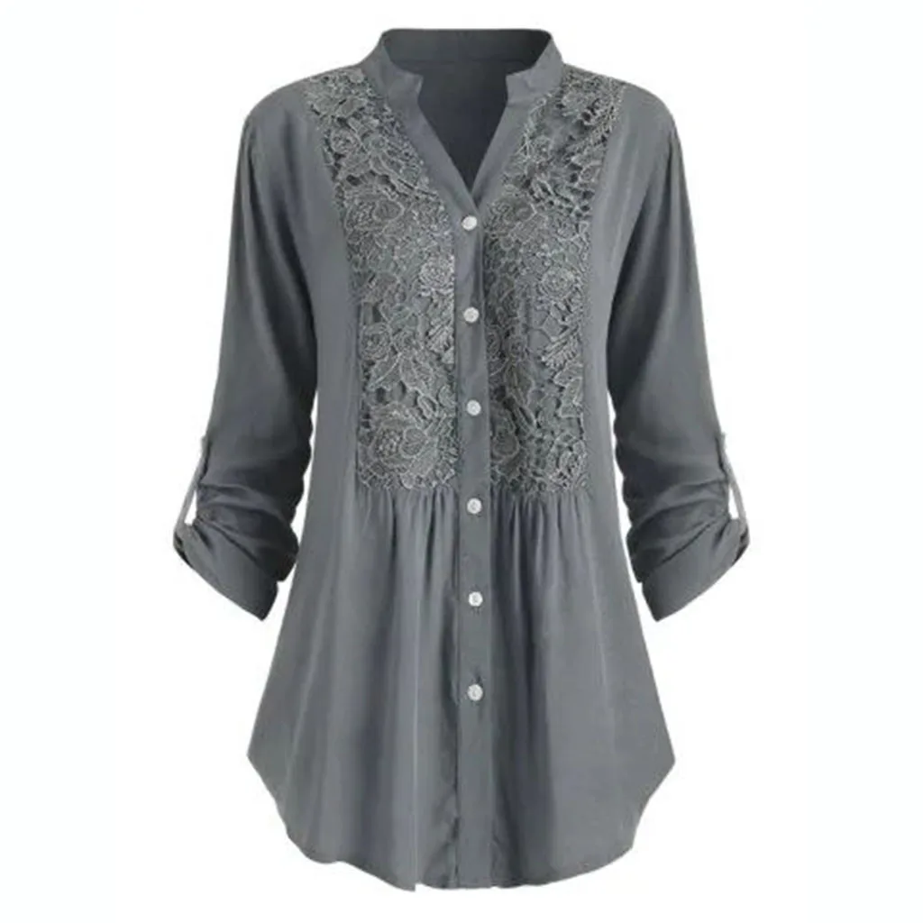 S-5XL женская блузка большого размера, летняя элегантная женская Кружевная блуза на пуговицах с v-образным вырезом и длинным рукавом, blusas mujer de moda 2020