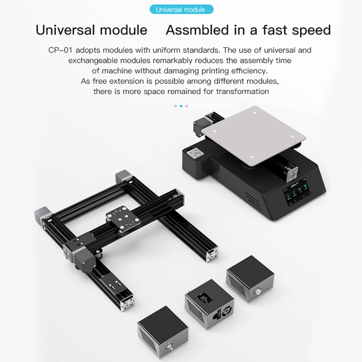Сменные и универсальные модули можно быстро собрать. Есть много места для трансформации. Вы можете заменить модульную головку машины, скручивая ее руками в течение 30 С.