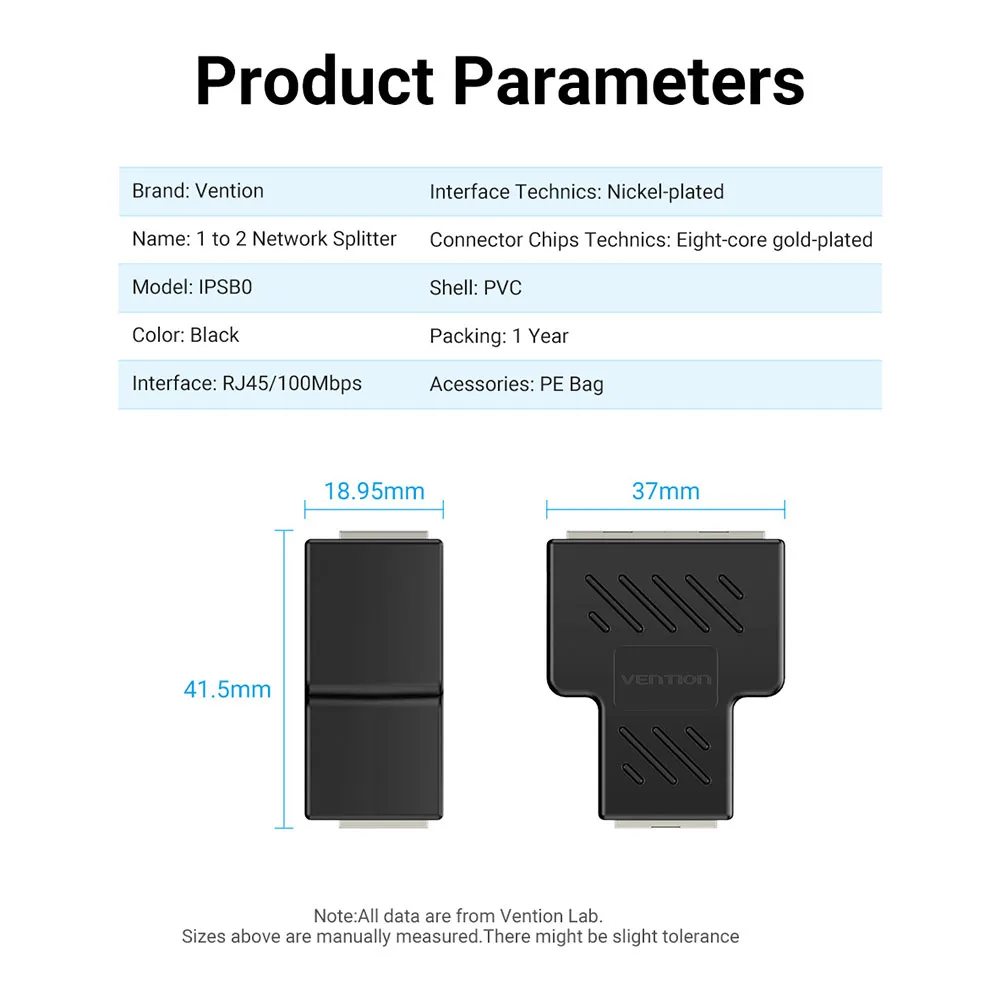 Vention IPSB0 2 шт., от 1 до 2 способов, RJ45 LAN Ethernet сетевой кабель, Женский сетевой адаптер разъём разветвитель Extender для ноутбука Cat6