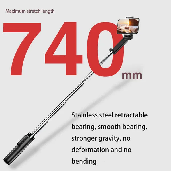 1. Профессиональная селфи-Палка с Bluetooth, встроенный штатив-палка для селфи, размер хранения 21 см, максимальный размер расширения 74 см, портативный, может быть непосредственно помещен в сумку, не занимает места