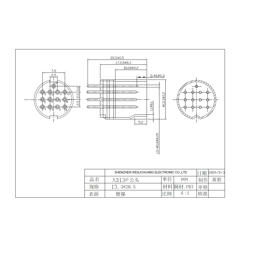 Din штекер, разъем Din, 13 Pin, обрабатываемый штыревой штырь, PCB, припой, класс 2A, 110 В, сквозное отверстие, Вертикальная круглая DIN