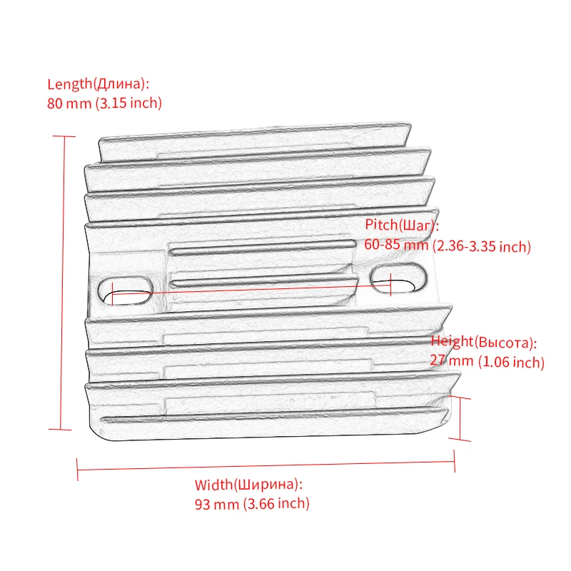-Мотоцикл регулятор, выпрямитель -Входное напряжение: 12 В постоянного тока -Цвет: как на картинке -Размер: 93*80*27/мм (3,66*3,15*1,06/дюйм) -Размер шага: нет Предотвращает чрезмерную зарядку аккумулятора и улучшает Возможность зарядки С ребрами радиатора для лучшего охлаждения Aftermarket регулятор напряжения мотоцикла выпрямитель Сверхмощный металлическая конструкция Помогает рассеивать избыточное напряжение, предотвращает чрезмерную зарядку аккумулятора Эффективно улучшить зарядку (кроме устройств Большой теплоотвод плавники дизайн для максимальной теплоотдачи