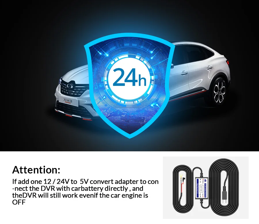 Если вы беспокоитесь о том, что ваш автомобиль был поврежден кем-то еще после парковки, вы можете использовать нашу леску для подключения видеорегистратора, чтобы убедиться, что рекордер работает 24 часа. Если кто-то другой повредит ваш автомобиль и ударные триггеры, датчик G, видеорегистратор сразу же включится и забудет ситуацию.