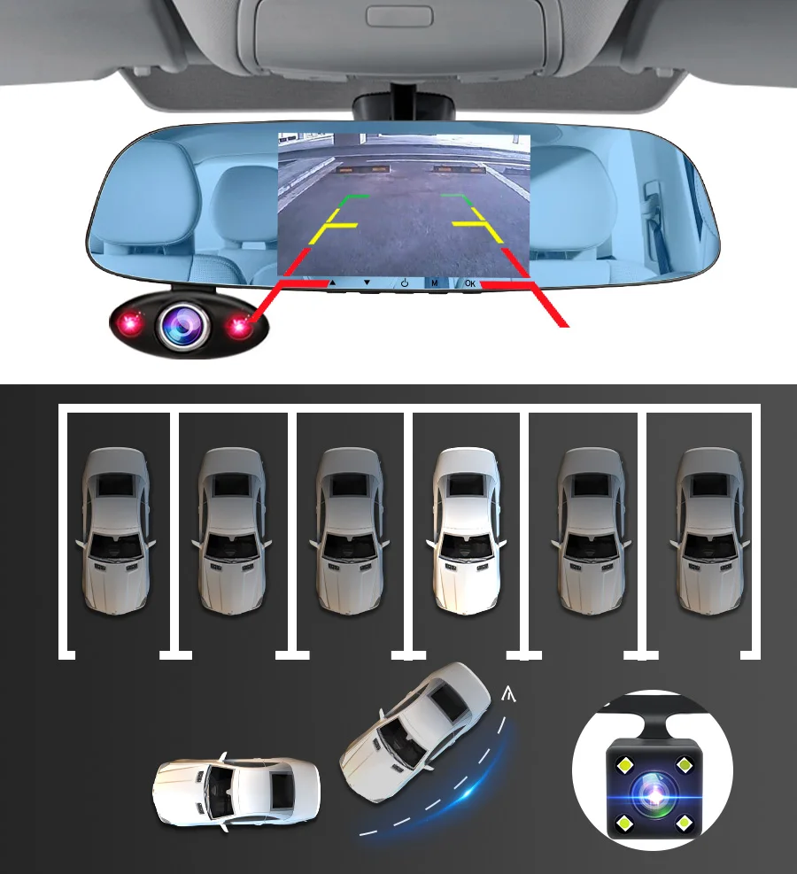 Пожалуйста, подключите красный кабель задней камеры к положительным полюсам вашей автомобильной лампы заднего хода (+). А затем Подключите автомобильное зарядное устройство к прикуривателю для питания автомобильного видеорегистратора. Когда вы получите автомобиль в обратном направлении, видеорегистратор автоматически переключается на заднюю камеру с помощью линии парковки. Затем будет работать функция автоматического реверса.
