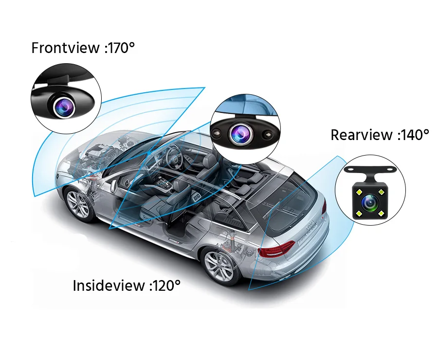 Фронтальная и внутренняя линзы записаны одновременно, фронтальная линза имеет широкий угол обзора 170 градусов, внутренняя линза имеет широкий угол обзора 120 градусов, наслаждайтесь счастливыми поездками с семьей, не забывайте своевременно записывать все счастливые видео.