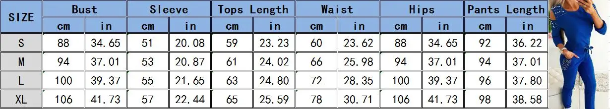 Возможны отклонения в размере от 2 до 3 см разницы из-за ручного измерения. Пожалуйста, внимательно сверьтесь с таблицей размеров, прежде чем вы покупаете item.1 дюймов = 2,54 смОбратите внимание, что небольшая разница в цвете должна быть приемлемой из-за освещения и экрана. Что вы получаете: 1 х женский спортивный костюм